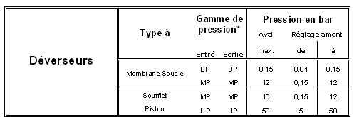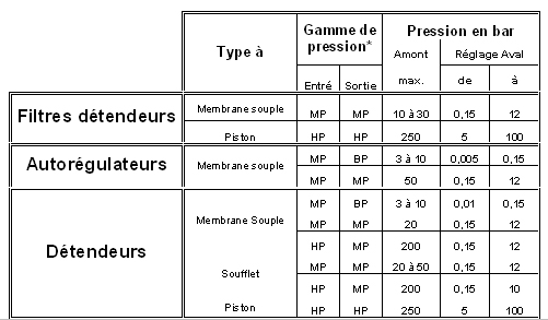 *(BP : low pressure ; MP : medium pressure ; HP : high pressure).